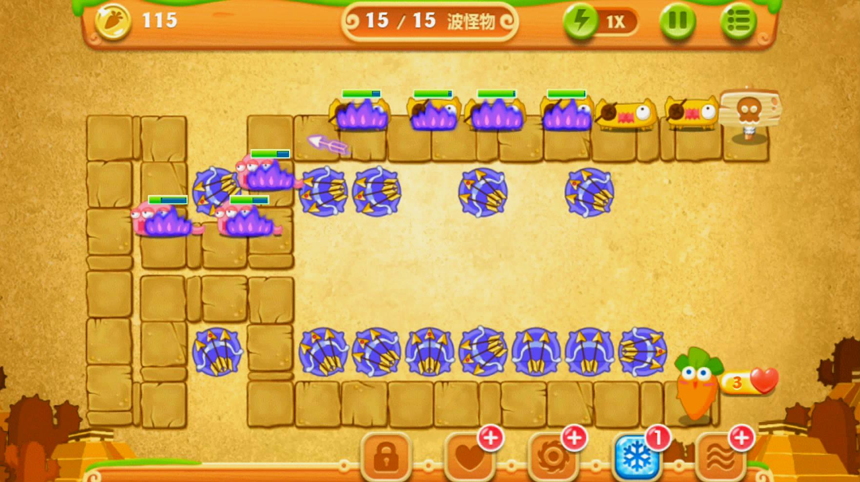 最终阶段需动态调整防线,若出现漏怪情况,立即出售边缘低效炮塔,将资源集中于核心输出单位。通关后解锁粉红萝卜角色,其晕眩技能对后续关卡有战略价值。多次尝试是优化策略的必要过程,通过复盘炮塔协同效率与技能释放节点可逐步提升稳定性。